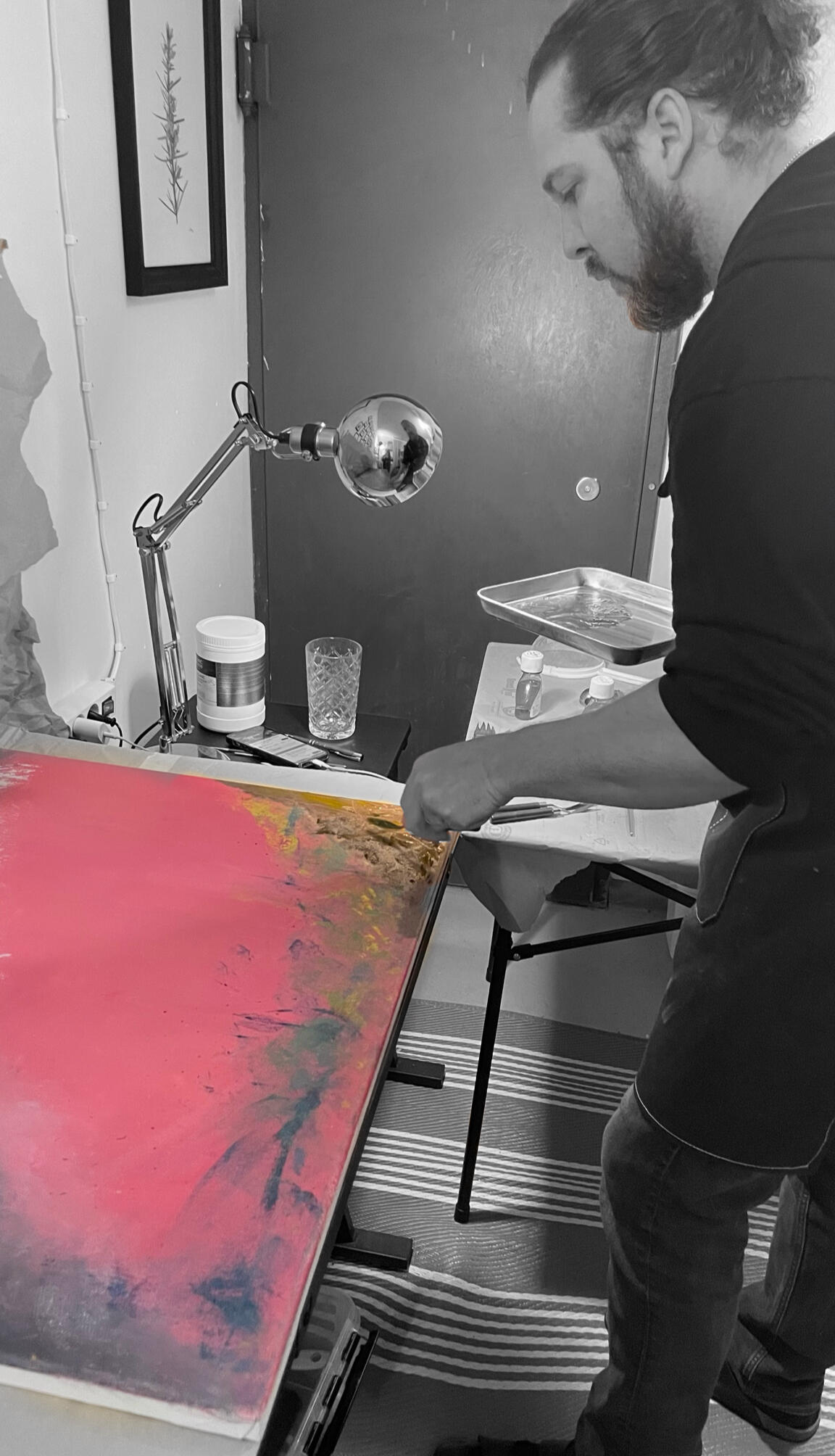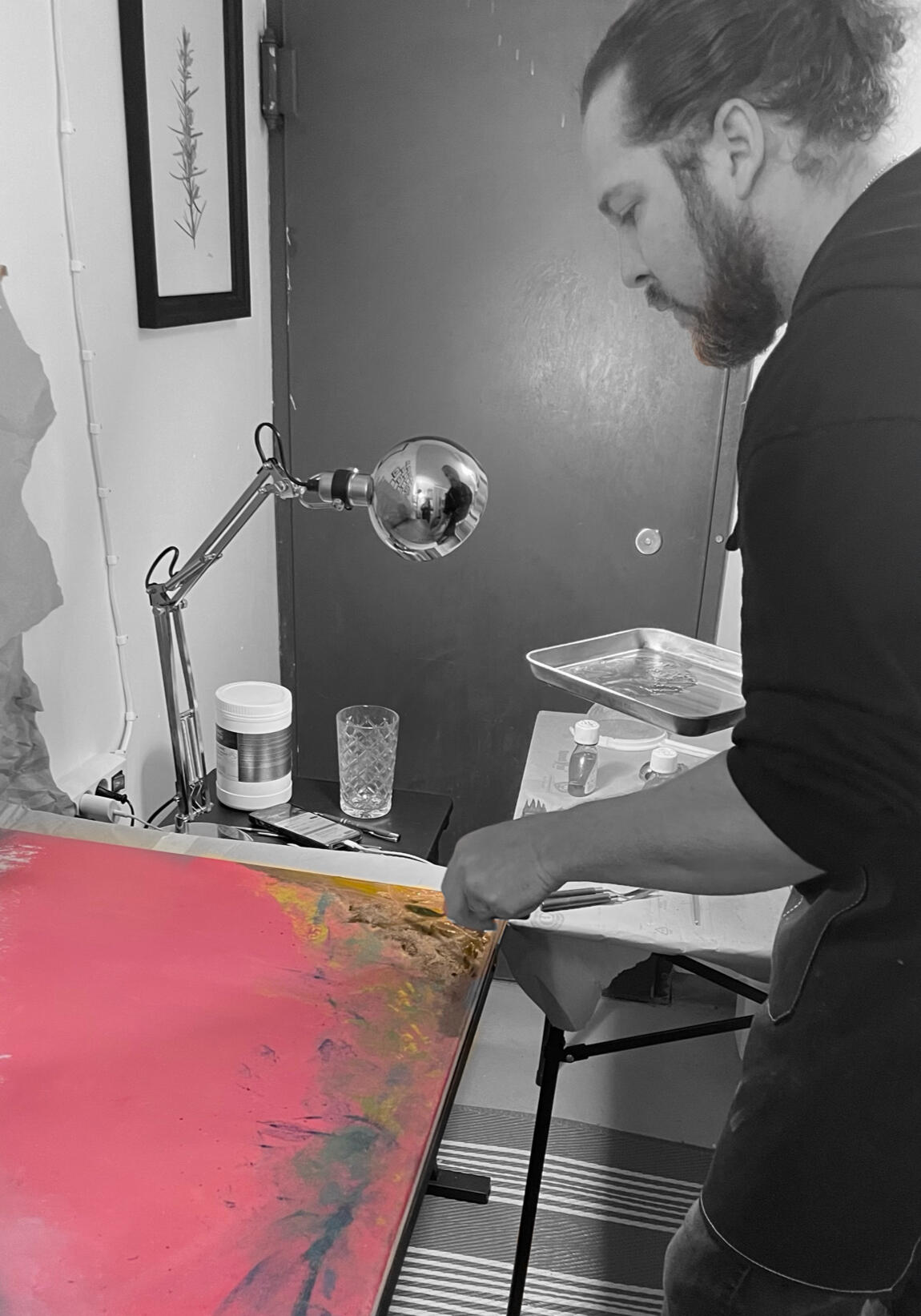 Daniel creates abstract and intuitive oil and watercolour paintings, letting his creativity flow spontaneously as he paints. His work, whether lighter watercolours or expressive oils, invites viewers to experience the beauty and essence of the world through his unique artistic lens.